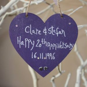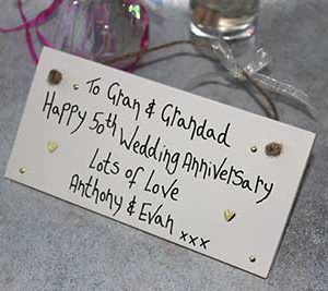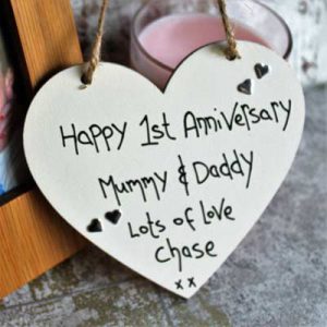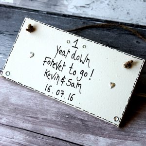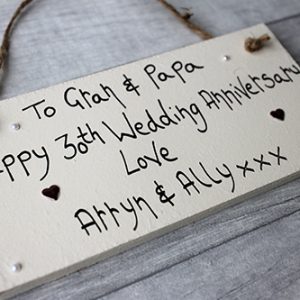 Beautiful Ruby Anniversary Gift for Mum and Dad. A personalised plaque handwritten with with heart felt words. Made in Scotland and made to order, this plaque measures 6″ by 3″and hangs from Jute twine.